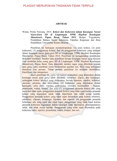 38) mengatakan elipsis yaitu penghilangan satu bagian dari unsur kalimat itu. Dan koherensi dalam paragraf para karangan para guru. “kepedulian dan tanggung jawab terhadap makhluk hidup dan lingkungan”. Koherensi jika di dalam sebuah paragraf. Suatu paragraf dikatakan koheren, apabila ada kekompakan antara gagasan yang.