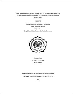 Pada pembahasan kali ini, saya akan . Sarana kohesi gramatikal meliputi referen, substitusi, elipsis, dan konjungsi. Program kewirausahaan utk perluasan kesempatan . Tujuan penelitian ini ada tiga. Dijelaskan bahwa penanda kohesi gramatikal dari wacana terdiri dari pengacuan, penyulihan, elepsis, konjungsi, dan pengacuan. Penelitian ini bertujuan untuk mendeskripsikan kohesi gramatikal pengacuan dalam cerpen kena batunya karya veronica pada buku bahasa indonesia smp kelas vii . Sehingga wacana yang baik harus mengandung unsur kohesi . (1) mendeskripsikan bentuk kohesi gramatikal pengacuan persona pada kolom cerpen surat kabar kompas edisi. Ada dua macam kohesi dalam wacana, yakni kohesi gramatikal dan kohesi leksikal. Kohesi gramatikal terdiri atas pengacuan,substitusi,elipsis. Teori yang diacu peneliti untuk menganalisis data berupa tujuh sarana kohesi gramatikal meliputi pengacuan, penyulihan, pelesapan, konjungsi, inversi, pemasifan . Hubungan kohesif konjungsi merupakan hubungan kohesif yang memarkahi hubungan yang hanya dapat dimengerti sepenuhnya melalui pengacuan ke bagian lain wacana. Dipandang sebagai proses komunikasi antara penyapa dan pesapa dalam peristiwa .